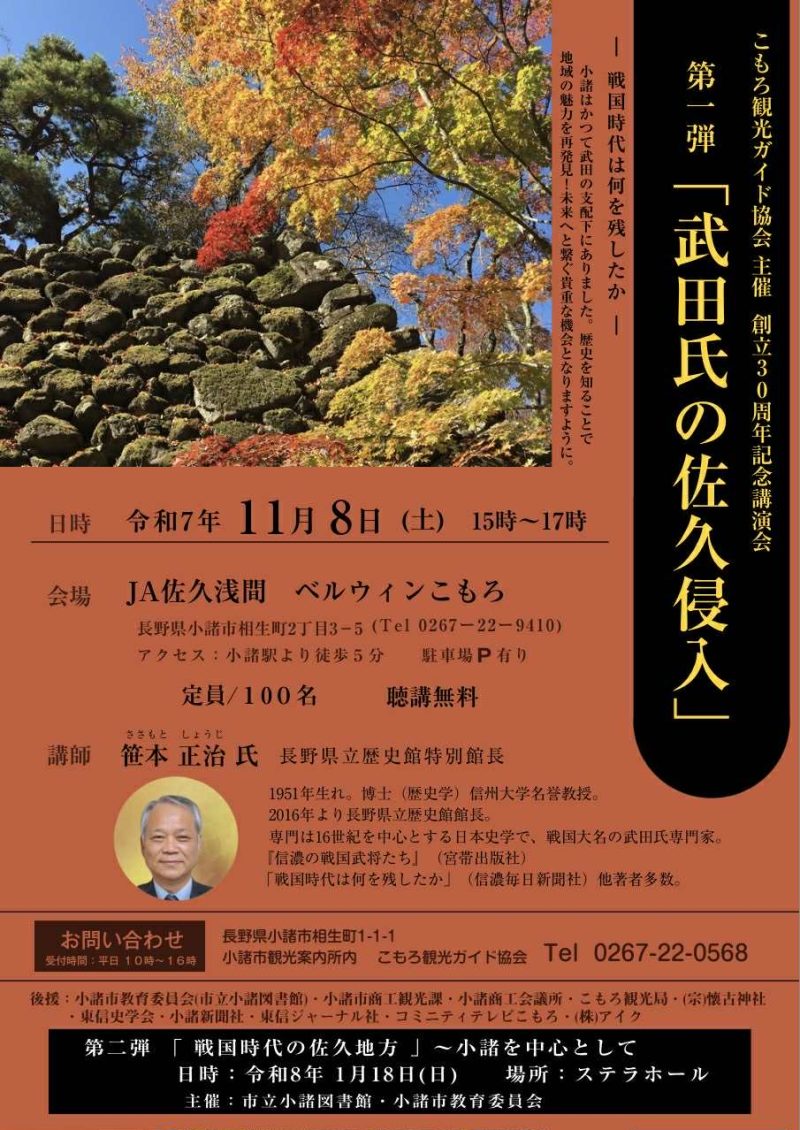 それを記念して、長野県立歴史館特別館長の笹本 正治氏を迎えた記念講演会を開催します。