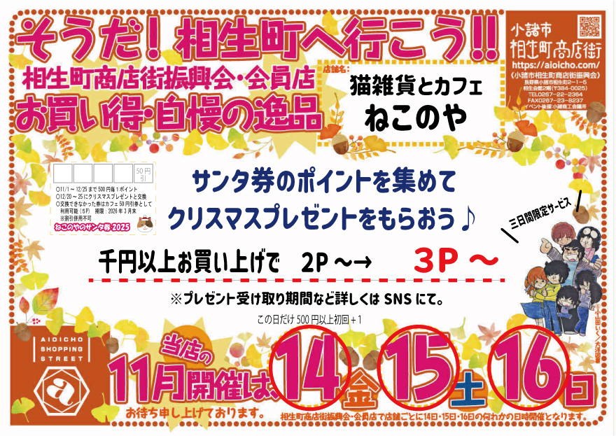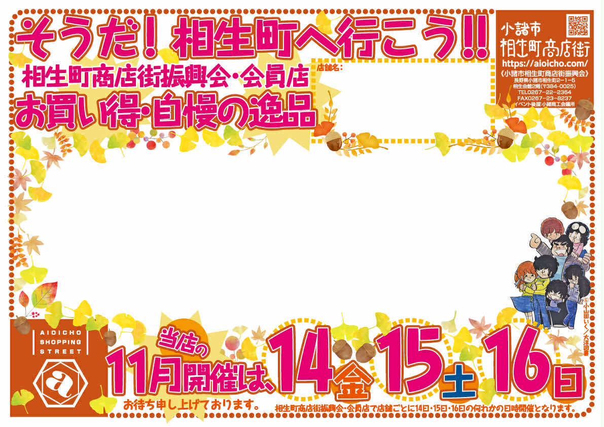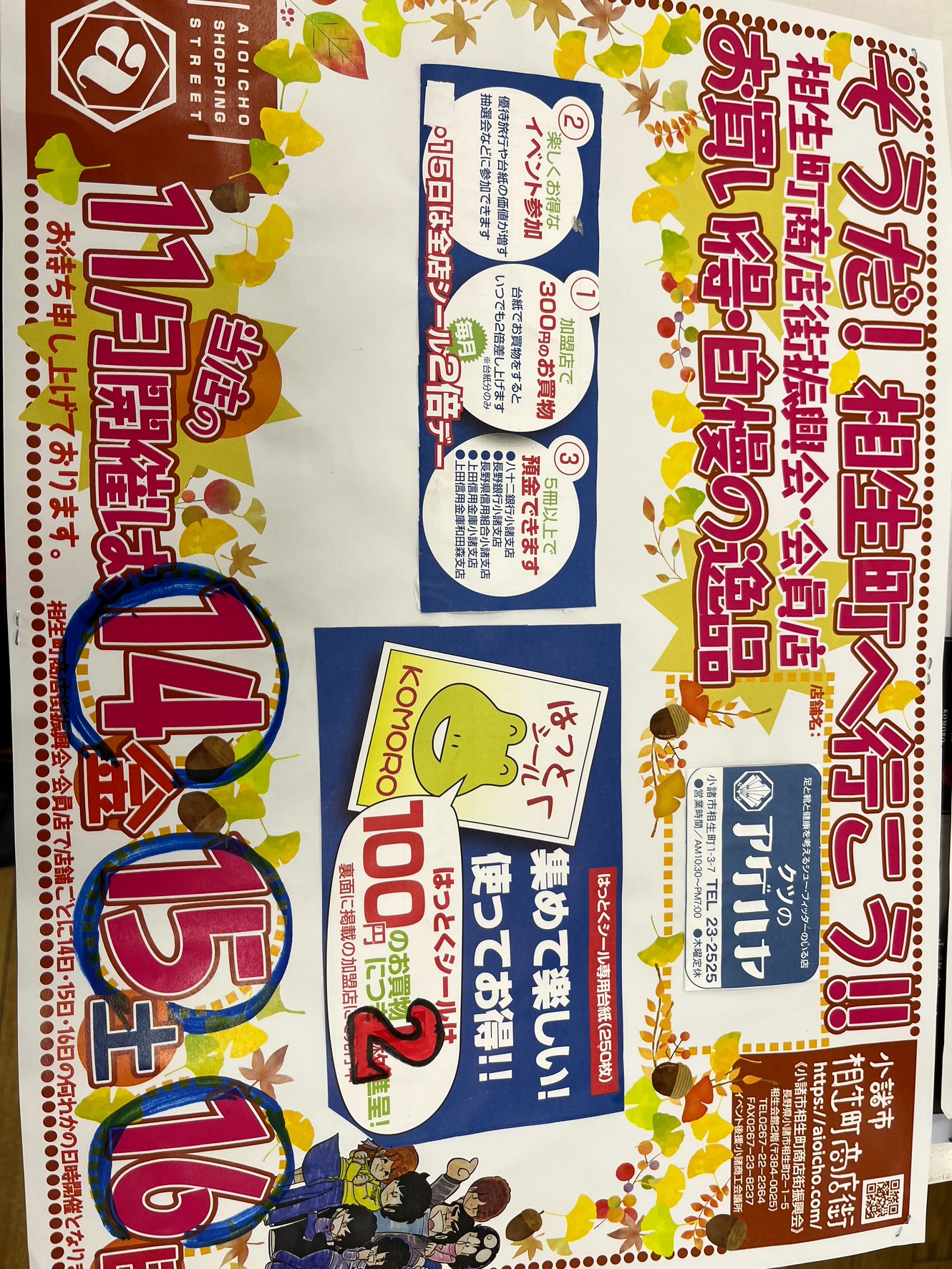 そうだ!相生町へ行こう!! 2025.01.212025.11.12 【毎月開催】相生町商店街振興会・会員店 お買い得・自慢の逸品 今月のサービス内容は… ■POP用テンプレートPDF ■POP用テンプレートJPG