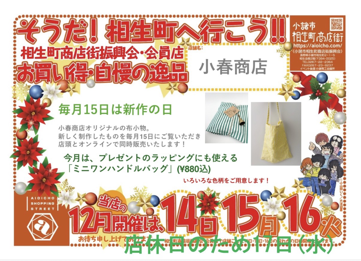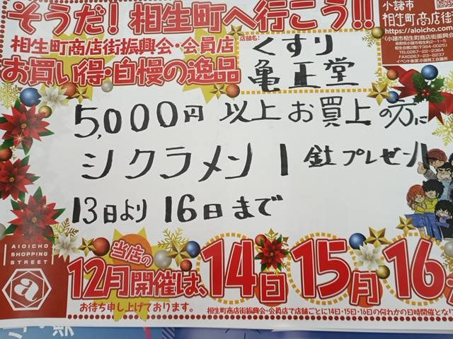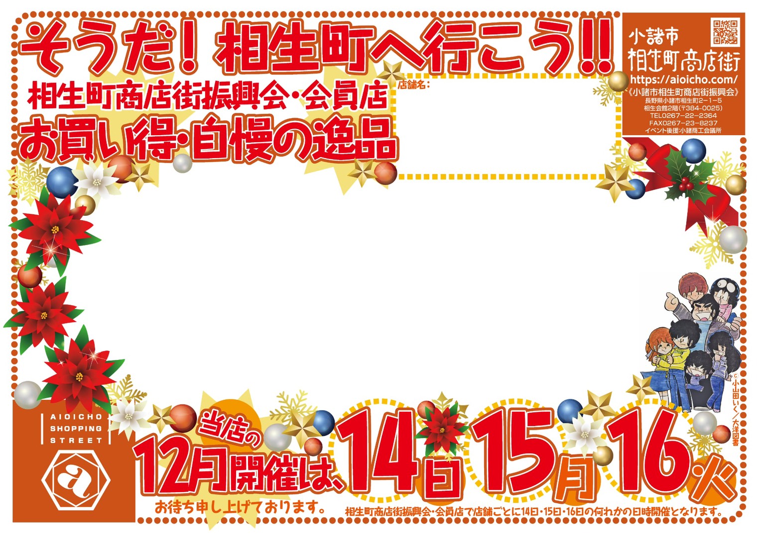 そうだ!相生町へ行こう!! 2025.01.212025.12.13 【毎月開催】相生町商店街振興会・会員店 お買い得・自慢の逸品 今月のサービス内容は… ■POP用テンプレートPDF ■POP用テンプレートJPG