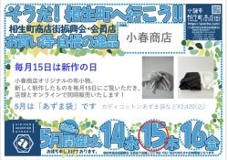 そうだ!相生町へ行こう!!202505 2025.11.022026.01.14 【毎月開催】相生町商店街振興会・会員店 お買い得・自慢の逸品 今月のサービス内容は… ■POP用テンプレートPDF ■POP用テンプレートJPG