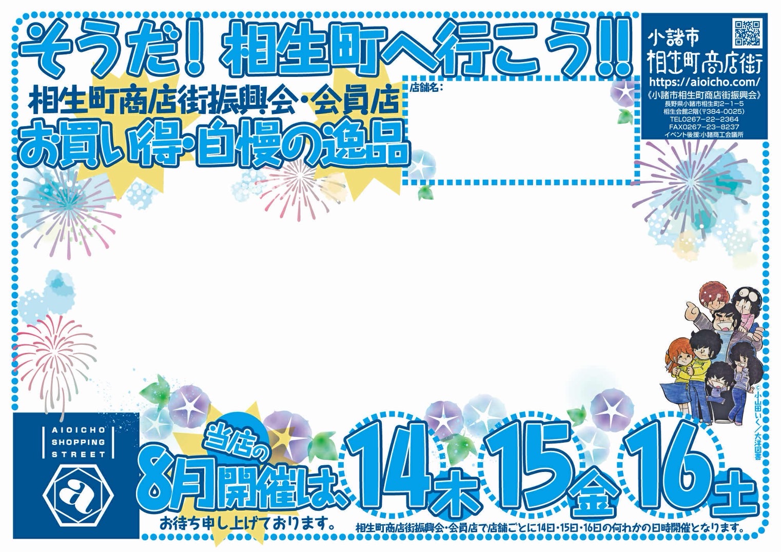 そうだ!相生町へ行こう!!202508 2025.11.02 【毎月開催】相生町商店街振興会・会員店 お買い得・自慢の逸品 今月のサービス内容は… ■POP用テンプレートPDF ■POP用テンプレートJPG