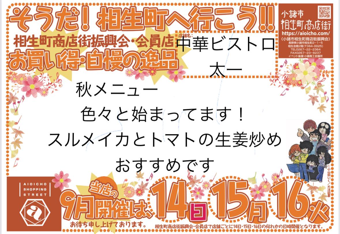 そうだ!相生町へ行こう!!202509 2025.11.02 【毎月開催】相生町商店街振興会・会員店 お買い得・自慢の逸品 今月のサービス内容は… ■POP用テンプレートPDF ■POP用テンプレートJPG